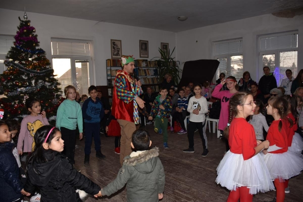 Белобрадият старец и неговия помощник, пяха и танцуваха заедно с децата и ги забавляваха с тематични празнични игри.