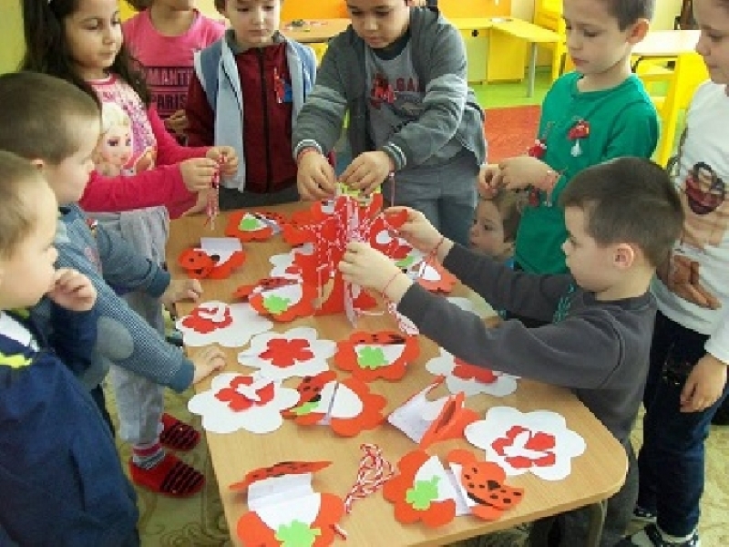 В Детска градина „Радост“ пък, децата запретнаха ръкави и под ръководството на техните учители, направиха дърво от хартия, което украсиха с изработени от тях мартеници.
