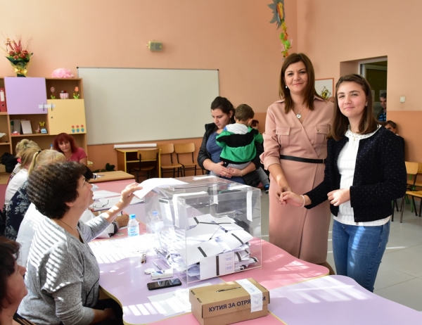Мария Попова гласува в секция №32 в Начално училище „Св. Софроний Врачански“ и беше придружавана от съпруга си Димитър и 11-годишната си дъщеря Петя.