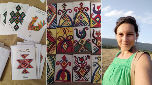 Наречена съм Мария и обичам да анализирам и да променям, да подобрявам и да сътворявам! Дълги години търсех себе си като пътувах и работех в други държави, търсех признание, търсех дом, търсех привлекателни проекти, търсех перфектното място за остатъка от живота ми... Така се прибрах в България, да преосмисля докъде съм стигнала и накъде отивам. От малка обожавам да рисувам и каквото и да захвана, все с рисуване е обвързано. След Художествената гимназия се хванах да плета и през годините съм се занимавала повече с приложно изкуство, плетени бижута, рисувани сувенири, неща от рециклирани материали и тн. Интересът към шевицата и символите е резултат от търсенето ми в миналото. Започнах да обикалям библиотеките и да чета за символите. Стилизирани рисунки с описанието на символи от шевицата съм разработила, като се предлагат под различна форма, като картички, рисувани торби, разделители за книги и други.
