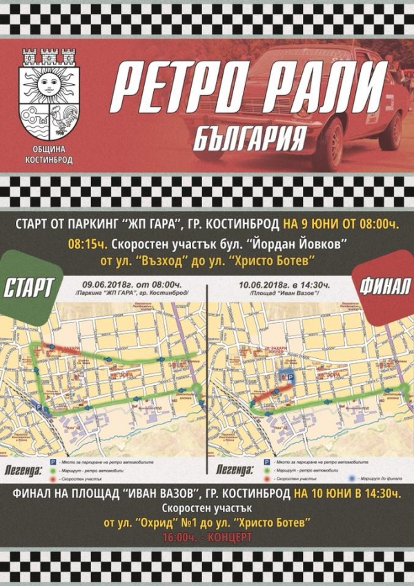 Стартът и финалът на четвъртото издание на международното ретро рали „България“ 2018 ще бъдат в град Костинброд. Ретро инициативата ще се проведе в два етапа.