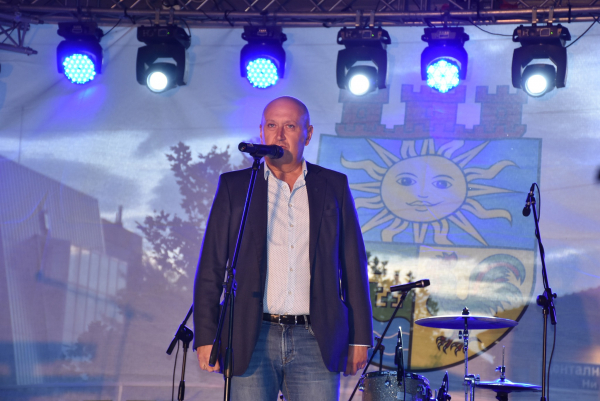 От сцената на площад „Иван Вазов“, Д-р Атанас Тенев приветства всички присъстващи и честити първия учебен ден на всички ученици и учители.