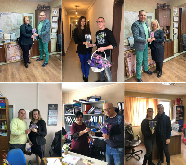 Мъжете от Общинска администрация-Костинброд подариха цветя на всички общински служителки по случай Международния ден на жената.