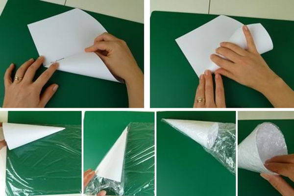 - хартия, за да направите конус (може да използвате и пластмасова конусна форма)