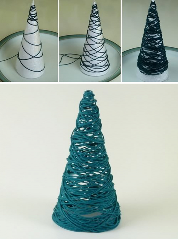 Ето и едно нашето предложение - коледно дърво от прежда. Лесно за изпълнение и прекрасно семейно занимание.