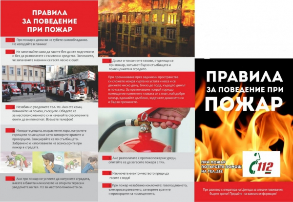 При възникване на пожар гражданите запазете самообладание и незабавно се обадете на тел. 112.