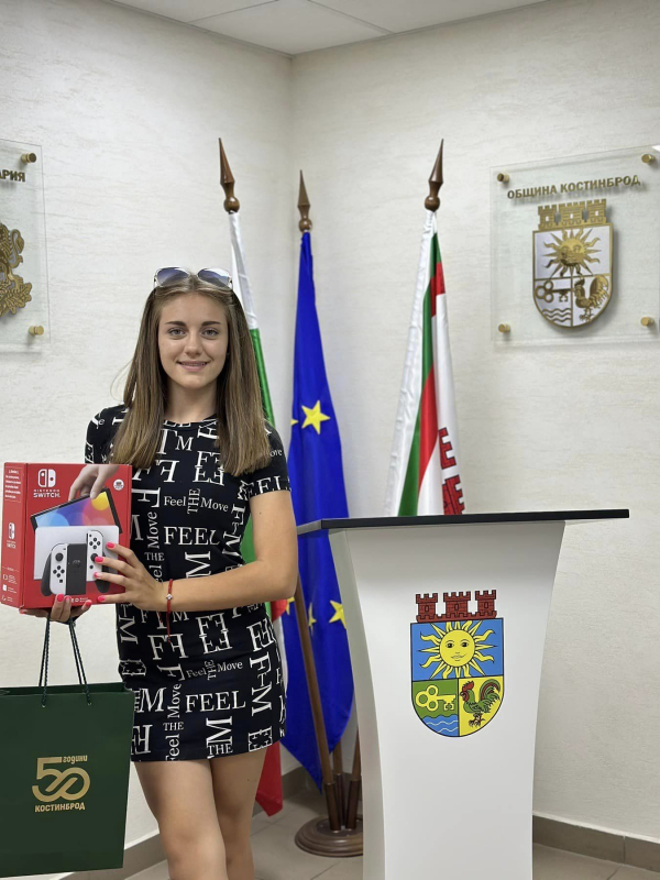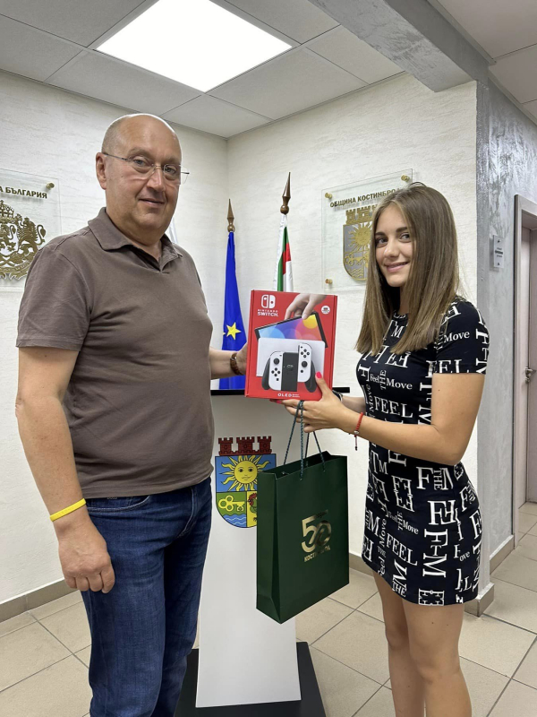 Своята награда – конзола NINTENDO SWITCH, с допълнителни джойстици и две игри, Натали получи лично от председателя на Общински съвет-Костинброд – д-р Атанас Тенев.