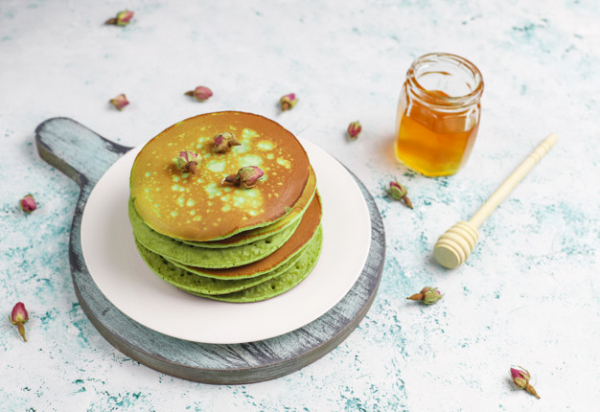 Рецептата се приготвя с помощта на чопър/блендер/пасатор. Смесете яйцата, 3. с.л. олио, щипка сол и измитият спанак. Към киселото мляко прибавете бакпулвера и разбъркайте. Долейте 100 мл хладка вода и изсипете в при сместа с яйцата и спанака. Бледнирайте до еднородна смес. Добавете брашното на няколко пъти и блендирайте. От готовата смес, пригответе всяка една от палачинките, като изиспвате около 1 черпак в предварително загрят и намазан с олио тиган. Печете и от двете страни. Готовите палачинки гарнирайте по желание.