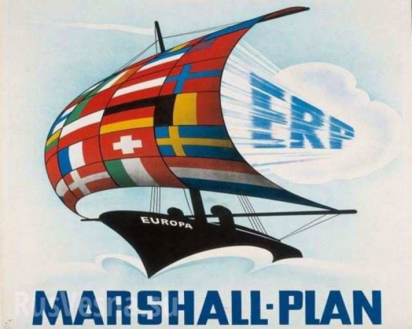 На 3 април 1948 г., президентът на САЩ Хари Труман подписва планът Маршал, с който се отпускат средства за възстановяване на Европа след края на Втората световна война Планът е в действие в продължение на 4 години от 8 април 1948 година. Целта на Съединените щати е да се възстановят засегнатите от войната области, да се премахнат търговските бариери, да се модернизира промишлеността и да се възстанови икономическият просперитет на Европа като преграда пред разпространението на комунизма. Част от плана е също премахването на множество регулации и насърчаване на ръста на производителността и членството в профсъюзи.