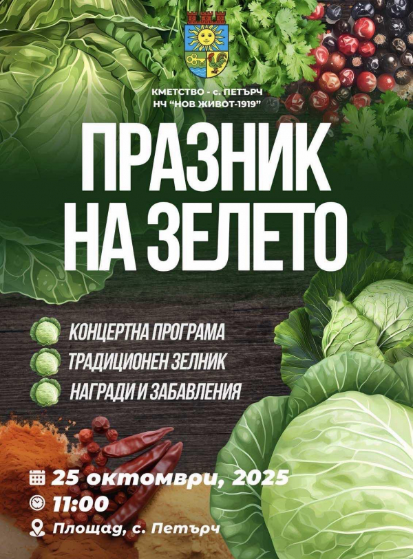 В съботния ден, централният площад на селото ще се изпълни с аромата на прясно приготвени зелеви ястия, смях и музика, а програмата ше предложи забавления за всички възрасти. Организатори на празника са Кметство Петърч и Народно читалище „Нов живот 1919“. Програмата на зелевия фест включва концертни изпълнения, кулинарна изложба, традиционен зелник и разбира се – много награди и забавления.