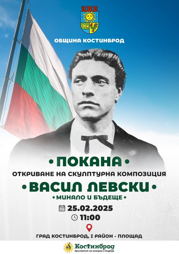 На 25 февруари 2025 г., в 11:00 часа, в Първи район на град Костинброд ще бъде официално открита новата скулптурна композиция на Апостола на свободата – Васил Левски. Паметникът, изграден със средства от дарителската кампания, ще бъде символ на почит към великото дело на Левски и важен елемент от културното наследство на града.