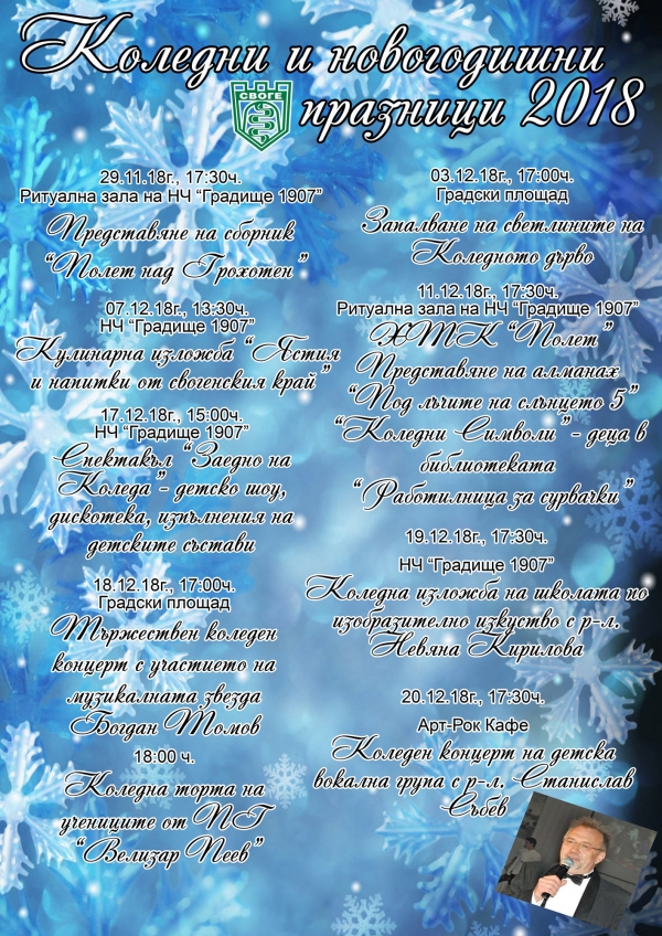По случай наближаващите коледни и новогодишни празници общинското ръководство има удоволствието да запознае жителите на община Своге с културния календар за месец декември и да отправи покана до всички желаещи да се включат в специално подготвените празнични мероприятия.