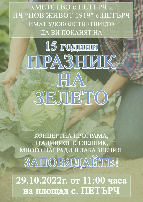 С вкусни гозби и богата програма Петърч ще посрещне своите гости за 15-тото издание на „Празник на зелето“. Кулинарното събитие ще се проведе на 29 октомври (събота) на площада в селото и ще започне в 11:00 ч.