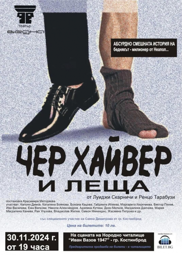 19:00 ч. „Чер хайвер и леща“ – постановка на Красимира Методиева. Зрителите могат да очакват динамичен сюжет и качествено актьорско изпълнение, със специалното участие на Сиена Димитрова от гр. Костинброд. Цена на билета: 10 лв.