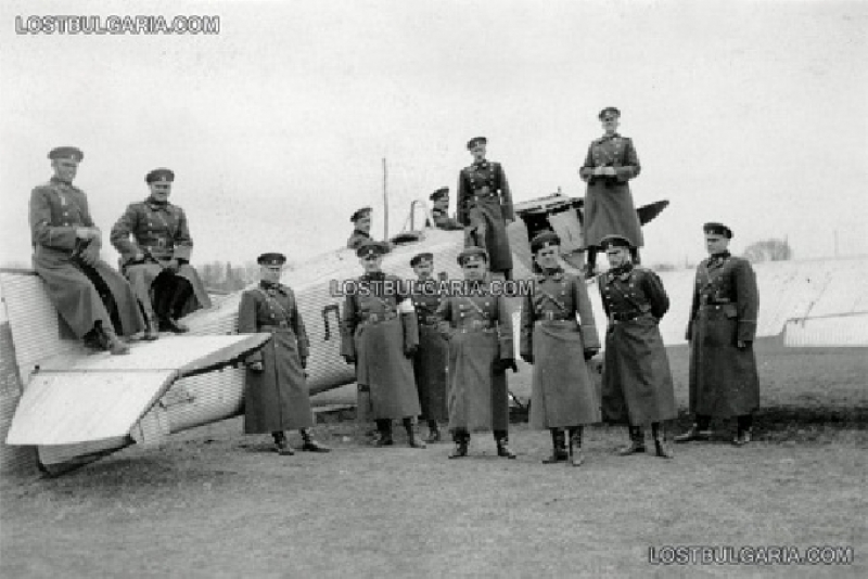 Снимка  1 - Група военни лекари и кавалерийски офицери на разходка до летище Божурище, пред самолет Юнкерс А-20 “Кума Лиса” Junkers A-20, 3март 1938 г.“