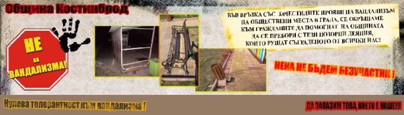 Продължава обществената кампания на община Костинброд срещу вандализма и грубите обществени прояви! Последната информация е от 29.07.2016г., за разрушено преасфалтирано пътно платно на ул. „Обединена“ в кв. Шияковци.