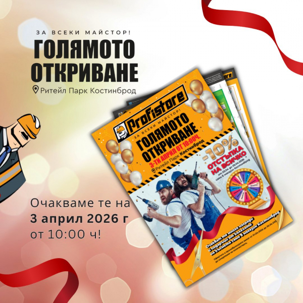 На 3 април 2026 г. от 10:00 ч. в Ритейл Парк Костинброд ще отвори врати новият, най-голям до момента магазин на Profistore. Обектът се намира в Блок I на модерния търговски комплекс, разположен на път II-81 (Ломско шосе 2-т).