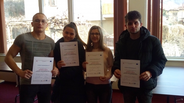 Александър Стефанов, Елица Маринова, Мария Коцева и Божидар Тошев - гимназисти от СУ „Козма Тричков“, се включиха в обучение по проект „Кариерна ракета: уважение, възможности, избор, знание, равенство и обучение”, чиято основна тема бе свързана с кариерното ориентиране, избора на професия и подпомагане на младите хора при избор на кариера и професия чрез премахване на стереотипите, определени от пола.