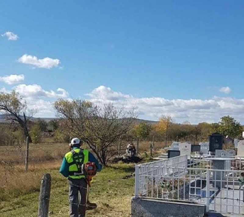 Почистване на всички гробищни паркове направиха днес от община Божурище. То включва премахване на избуялата тревна растителност.