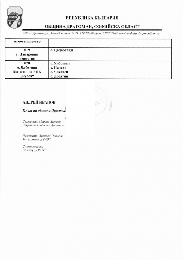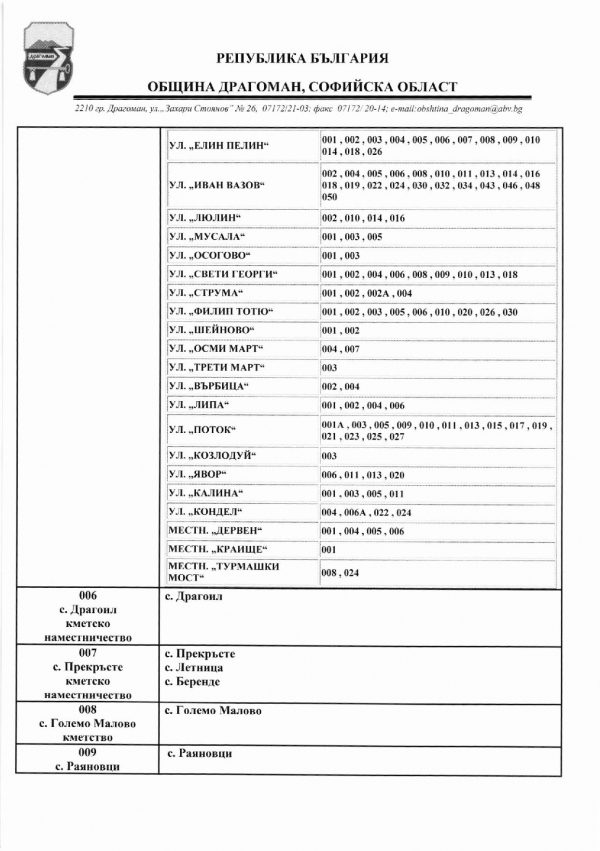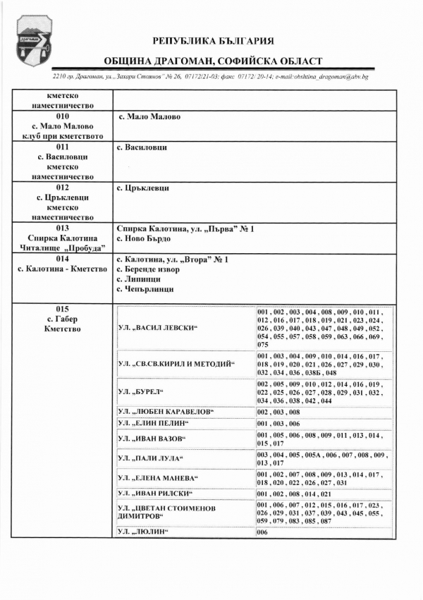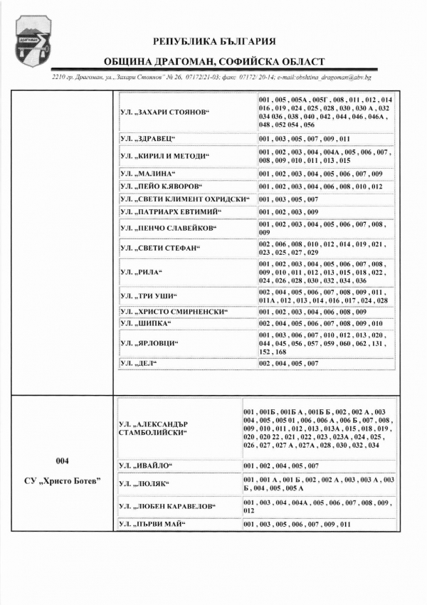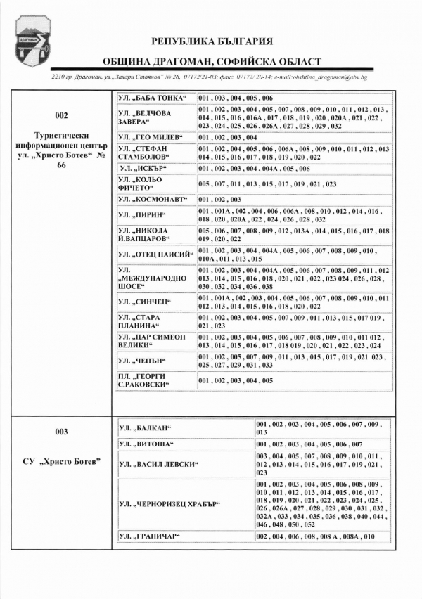 Ето и избирателните секции в община Драгоман: