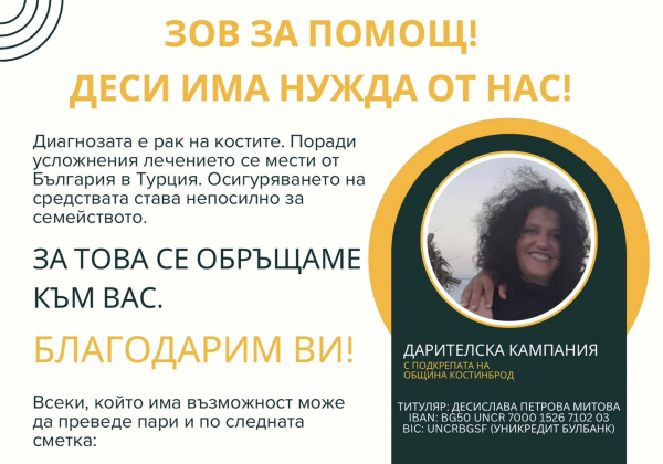 Община Костинброд: „Заедно за един по-добър живот – Деси има нужда от нас!“