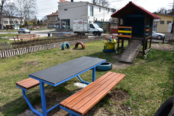 Площадката се намира в Първи район. Преди поставянето на пейките бяха обновени детските съоръжения на площадката, а родители облагородиха градинката около детската площадка.