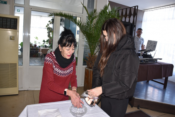 Майката на Анастасия Станимирова /дете родено през януари 2023 г./ беше поканена да направи ритуала „Бабуване“, заедно с акушерката Юлия Динкова. Двете дами пресъздадоха ритуала по поливане на ръцете – тези ръце, които са помогнали децата ни да се появят на бял свят.