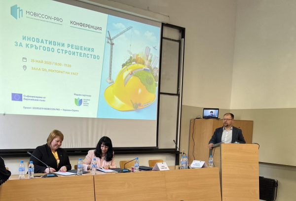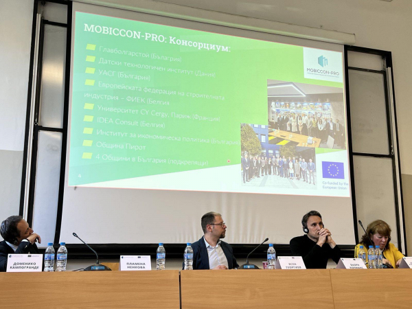 Консорциумът по проект MOBICCON-PRO, член на който е и Институт за икономическа политика, организира конференция на тема „Иновативни решения за кръгово строителство“, която се проведе в Зала 120 (Ректорат) на Университета по архитектура, строителство и геодезия (УАСГ).