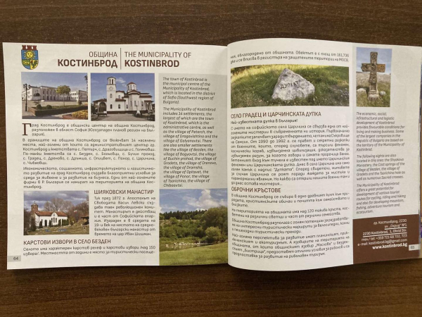 Подробна информация за туристическите обекти на община Костинброд може да намерите в новия брой на справочника София и Софийска област – Бизнес, култура, туризъм 2023 г. на страница 64 и 65.