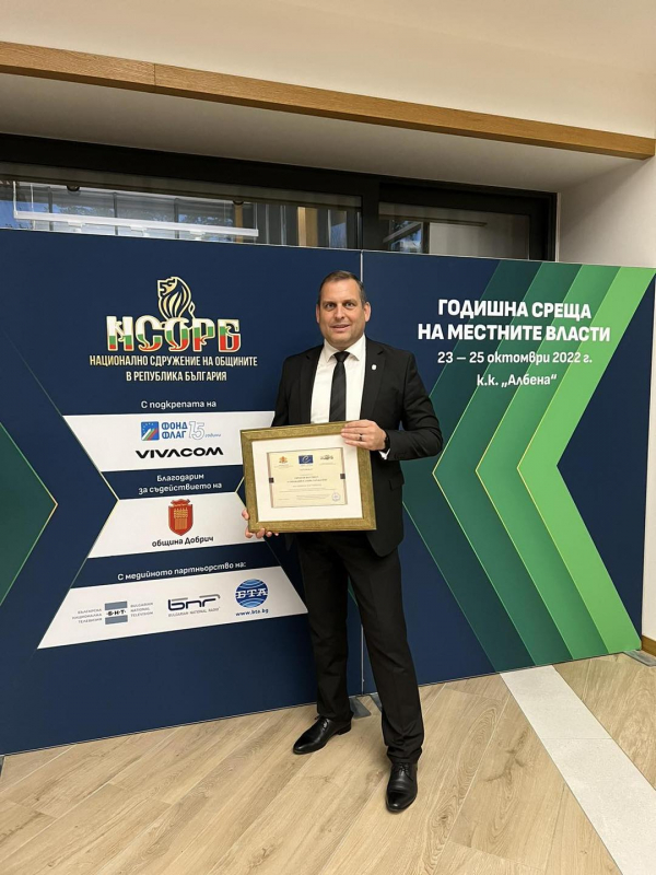 Церемония по връчване на Етикета за иновации и добро управление се проведе в рамките на Годишната среща на местните власти, организирана от НСОРБ. Форумът се провежда от 23 до 25 октомври в к.к. „Албена“ и събира кметове, председатели на общински съвети, съветници и ключови експерти от общините с представители на изпълнителната власт, партньори от страната и чужбина. Основните теми на обсъжданията са свързани с перспективите за развитието на общините, проблемите, пред които се изправят местните власти, опита и поуките на отделни общини.