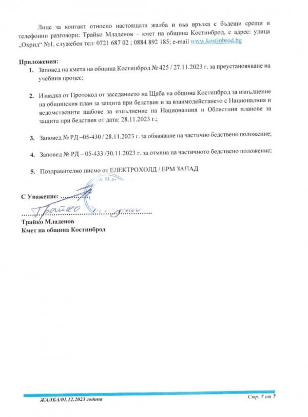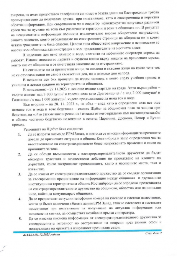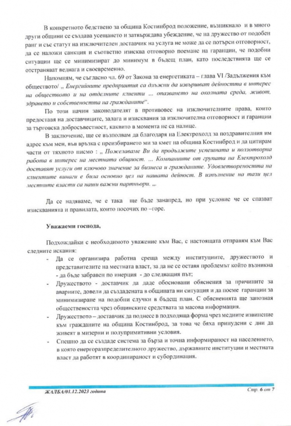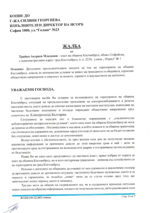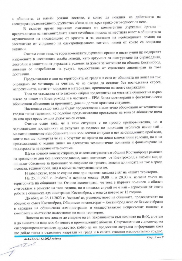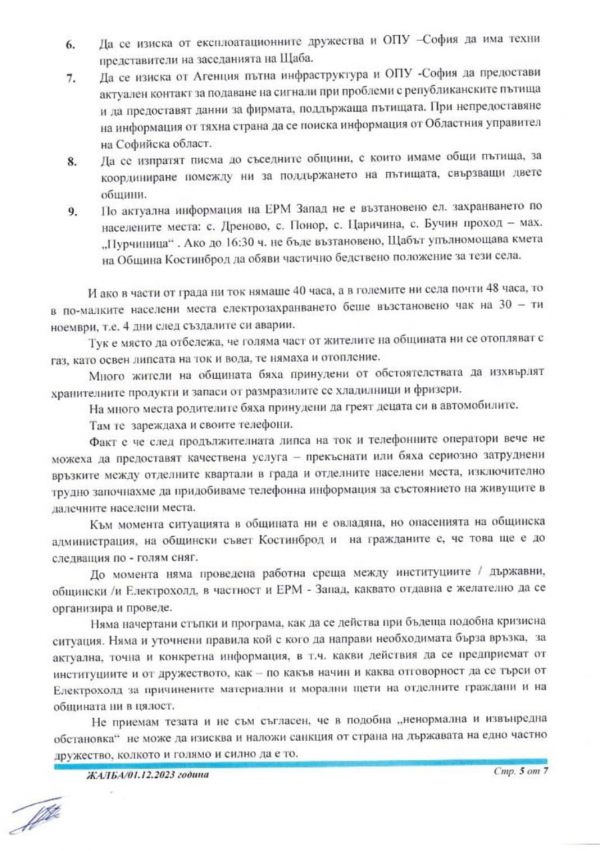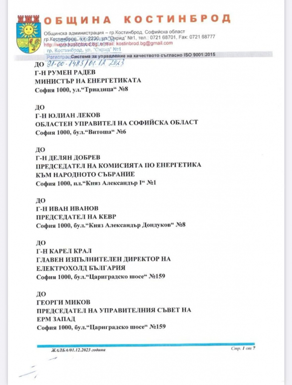 Днес беше изпратено писмо от Общинска администрация Костинброд до електропреносното дружество и до компетентните държавни органи.