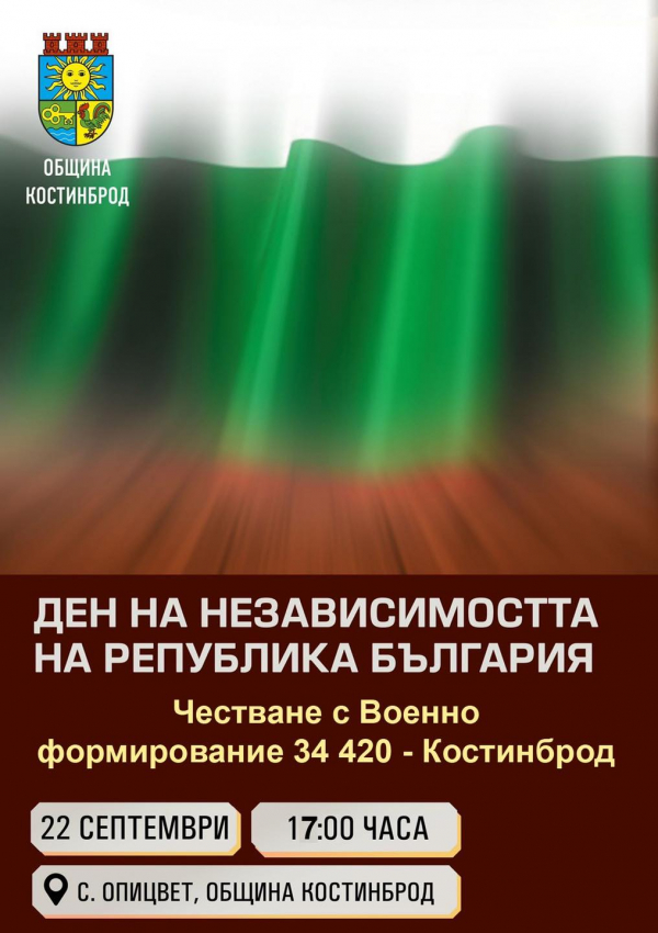 На площад „Независимост“ в село Опицвет, Община Костинброд ще отбележи 114-та годишнина от Независимостта на България.
