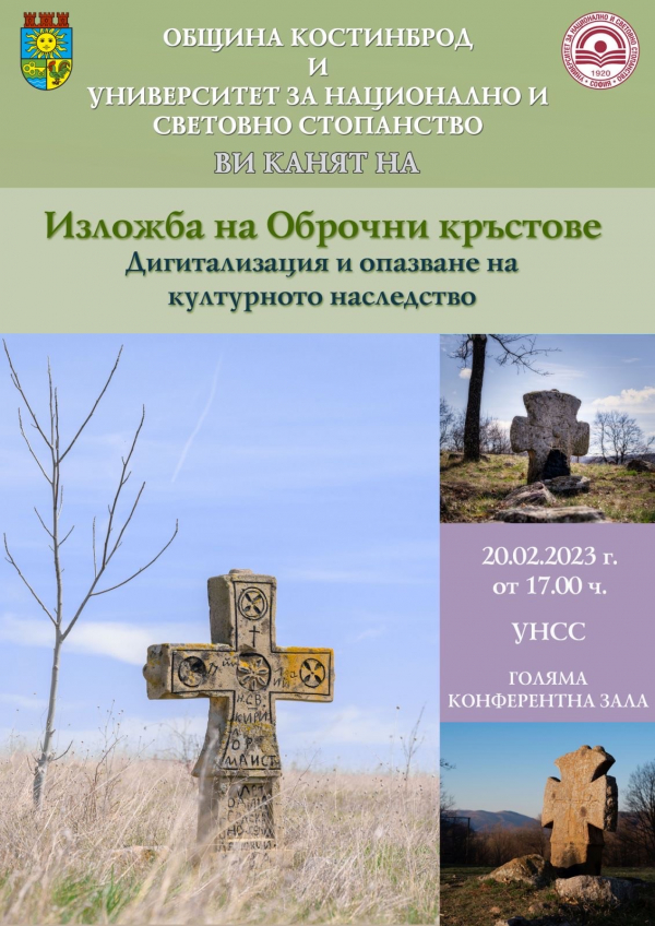 Община Костинброд организира съвместно с Университет за национално и световно стопанство изложба „Оброчни кръстове – Дигитализация на културното наследство“ на 20 февруари /понеделник/ от 17.00 часа в УНСС – Голяма конферентна зала.