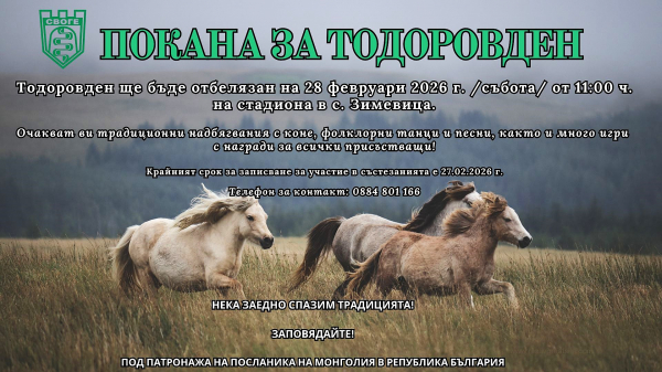 Община Своге традиционно ще отбележи Тодоровден с конни надбягвания и празнична програма. През 2026 година църквата почита паметта на Свети Теодор Тирон на 28 февруари. Началото на празника ще бъде точно в 11.00 часа на стадиона в село Зимевица.