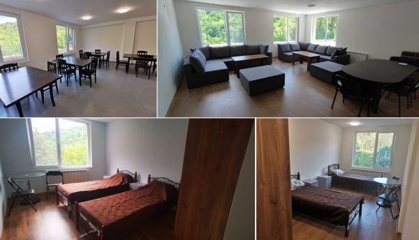 Всяка сграда разполага с 2 етажа с единични и двойни стаи, като единичните помещения са предназначени за лицата с увреждания. Всяко спално помещение разполага със собствен санитарен възел като в помещенията за лица с увреждания са монтирани статични и подвижни ръкохватки и са съобразени с всички европейски изисквания за безопасност. И трите сгради разполагат с кухня и столова, всекидневна с мека мебел и телевизори, където потребителите ще могат да прекарват свободно време, кабинети за персонала - медицински сестри, трудотерапевти, специалистите - психолог и психиатър, мокро помещение с пералня и сушилня. Кабинетите на специалистите и Директора са оборудвани с персонални компютри и лаптоп, осигуряващи нужните условия за индивидуална работа с потребителите. Оборудването и обзавеждането в помещенията са съобразени с всички нормативни изисквания, осигуряващи здравето и безопасността на хората с увреждания. В една от сградите е разположено котелно помещение, което ще  осигурява отоплението и на трите къщи посредством изградена топла връзка между тях. Отоплението през зимния сезон е решено чрез автоматичен котел на пелети с мощност 110 kW в комплект с горелка и табло, осигуряващо автоматично запалване и регулация на мощността. И в трите къщи са монтирани вертикални подемници - асансьори, които осигуряват достъпа на лицата с увреждания до спалните помещения на втория етаж. Монтирани са мълниезащитна и заземителна инсталация, система за SOS известяване, система за видеонаблюдение и запис, кабелна телевизионна мрежа.