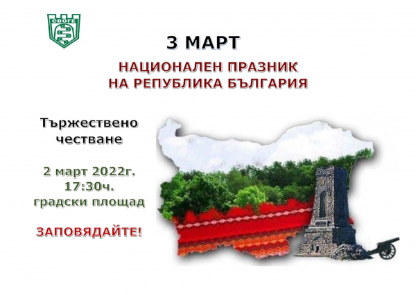 Мероприятието ще се проведе на 02.03.2022 г. от 17:30 ч. на градски площад.