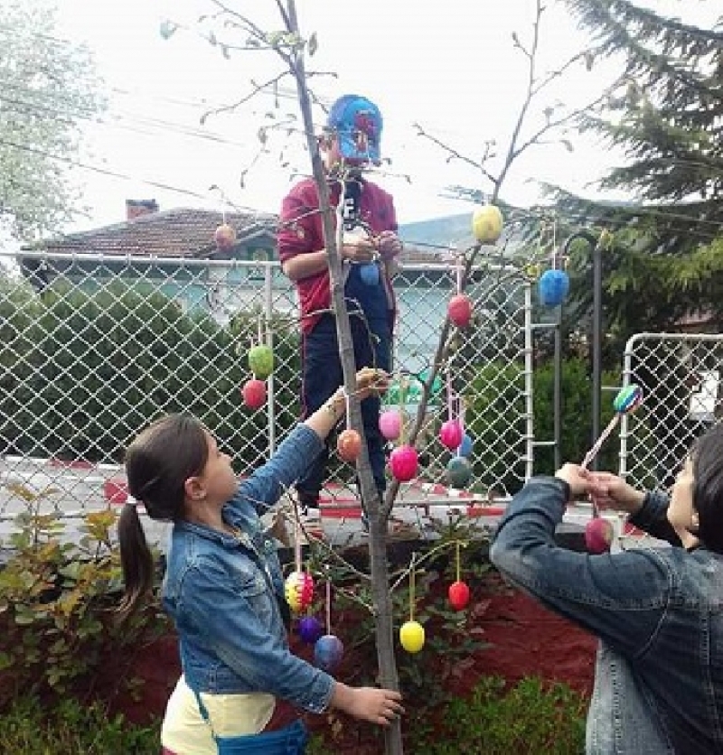 Общинската администрация в Своге украси дръвчетата в двора си в навечерието на Великден.