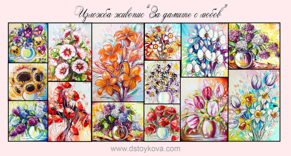 Изложбата включва общо 30 маслени картини с цветя и може да бъде разгледана онлайн в сайта на галерията: https://dstoykova.com/izlojba-za-damite-s-lubov
