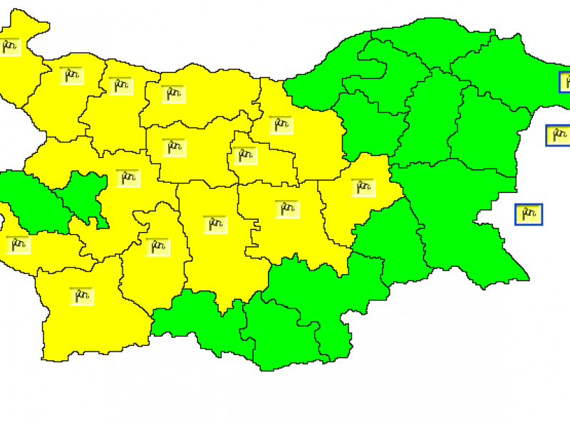 Жълт код за опасно силен вятър с пориви между 40 и 50 км/ч има обявен днес за територията на 14 области в страната. Това са областите Видин, Монтана, Враца, Плевен, Велико Търново, Габрово, Ловеч, Сливен, Стара Загора, Пловдив, Пазарджик, Софийска област, Благоевград и Кюстендил.