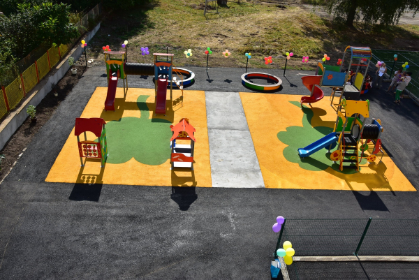 Новите детски площадки са поставени в задната част на двора на детското заведение. Съоръженията са проектирани с високи стандарти за безопасност. Те включват разнообразни игри и атракции, които са подходящи за деца на различни възрасти.