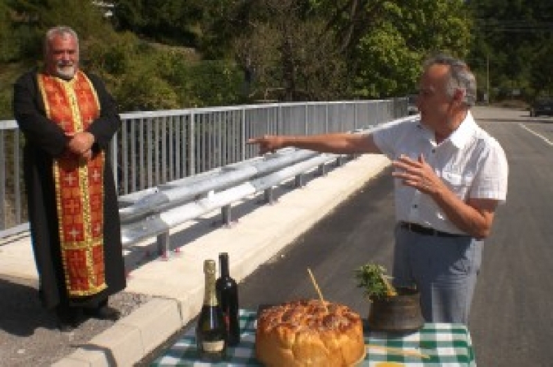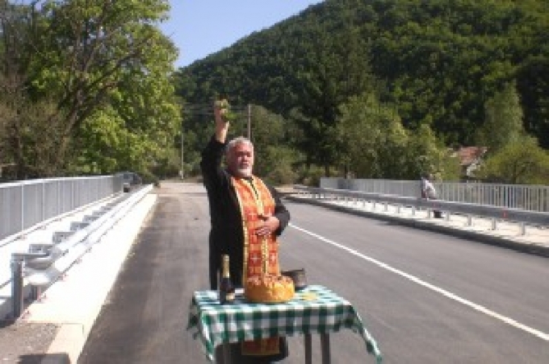 Последва традиционното прерязване на лентата, което бе извършено от г-жа Росица Иванова, инж. Жоро Цветков и представител на фирмата-изпълнител. С този акт мостът бе официално открит.