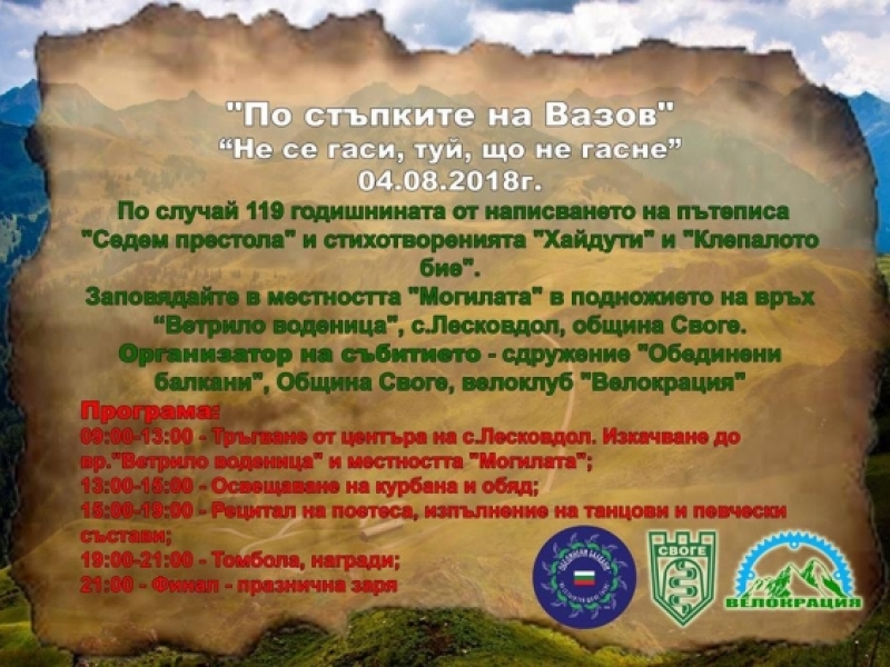 Повече информация за инициативата може да намерите във фейсбук страницата на събитието „По стъпките на Вазов“.