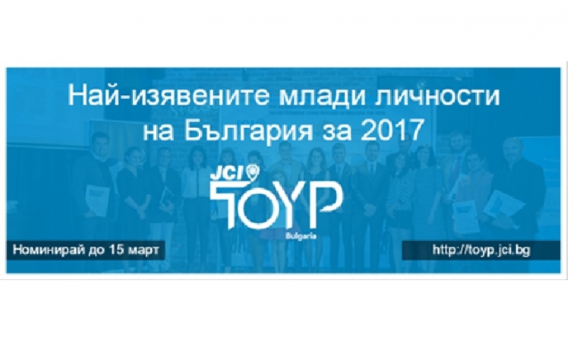Остава по-малко от месец до затварянето на номинациите за Програма „Най-изявените млади личности на България" за 2017 г. Те се събират за трета поредна година у нас от Junior Chamber International – България в рамките на световноизвестния формат The Outstanding Young Persons – TOYP („Най-изявените млади личности”).