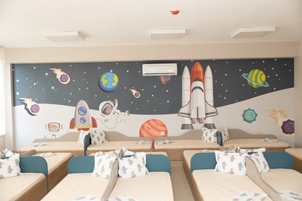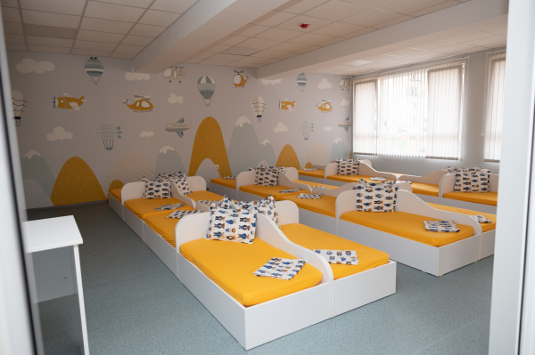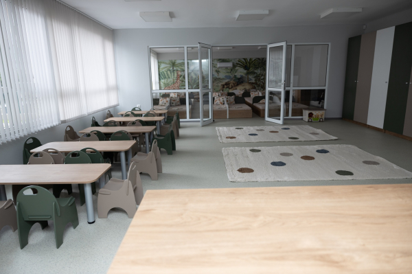 • Модерни занимални и спални помещения за всяка група, със самостоятелни санитарни възли и гардеробни;