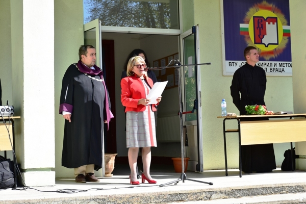 Пожелания за успешна академична година и благодарност за оказаната подкрепа през последните години от Община Враца и Областна администрация отправи и заместник ректорът на Великотърновския университет - проф. дмн Вихрен Бузов. Той добави още, че чрез ползотворното сътрудничество между институциите Враца се утвърждава като университетски град и образователен център.