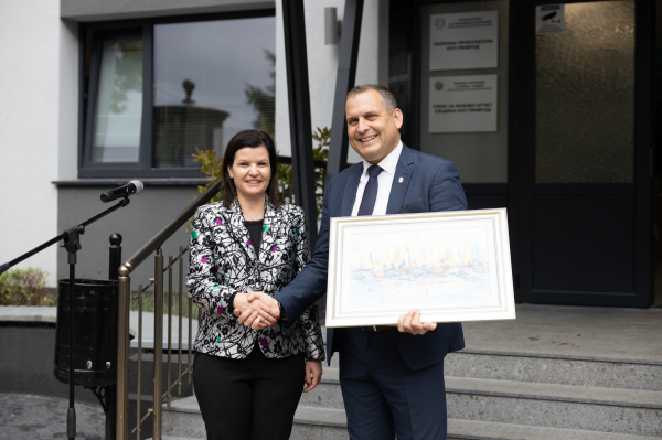 Изпълнителният директор на НСОРБ Силвия Георгиева поднесе специален подарък на кмета на община Костинброд, който да украси с ярките си краски стените на обновената административна сграда.