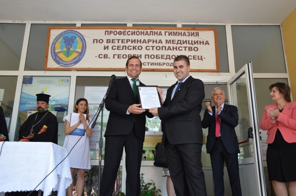 Откриха официално изцяло ремонтираната сграда на Професионалната гимназия по ветеринарна медицина и селско стопанство „Св. Георги Победоносец“ в Костинброд. На събитието присъстваха кметът на общината Трайко Младенов, инж. Таня Михайлова – зам.-министър на образованието и науката, Любен Кънчев - зам.-министър на туризма, Росица Иванова - началник на РУО-София регион, Александър Милушев - ръководител производствен център на „Кока Кола Хеленик Ботълинг Къмпани България“, заместник-кметовете Александър Ненов, инж. Габриела Георгиева и Теодора Гогова, д-р Атанас Тенев - председател наОбС-Костинброд, Иван Иванов, Даниела Станкова и Димитър Найденов - общински съветници, директори на училища, кметове и кметски наместници, много граждани и гости.