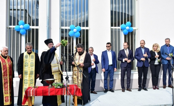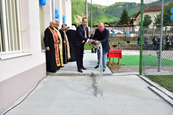 Събитието продължи с водосвет за здраве и благополучие, отслужен от Негово Високопреосвещенство Врачански митрополит Григорий, който освети новата сграда и спортната площадка.