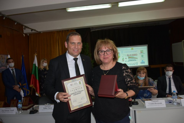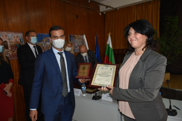 „Джиев“ АД - дариха дезинфектанти за нуждите на общината. Наградата се връчи на Павлина Джиева.