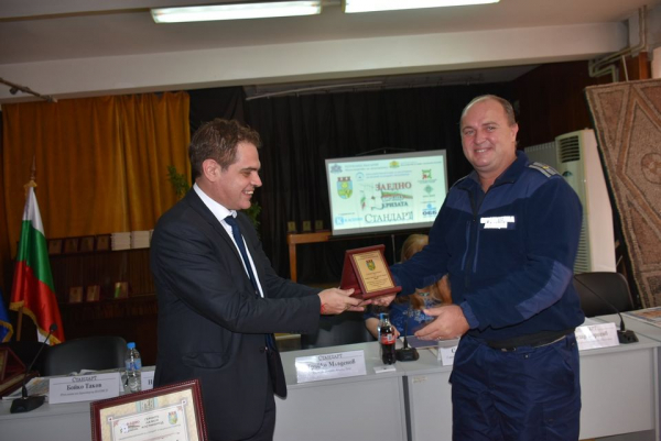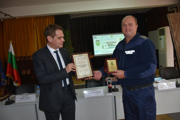 Общински Инспекторат. Пълно съдействие и даване на 24 часови дежурства. Наградата се връчи на Димитър Георгиев- директор на Общински инспекторат.